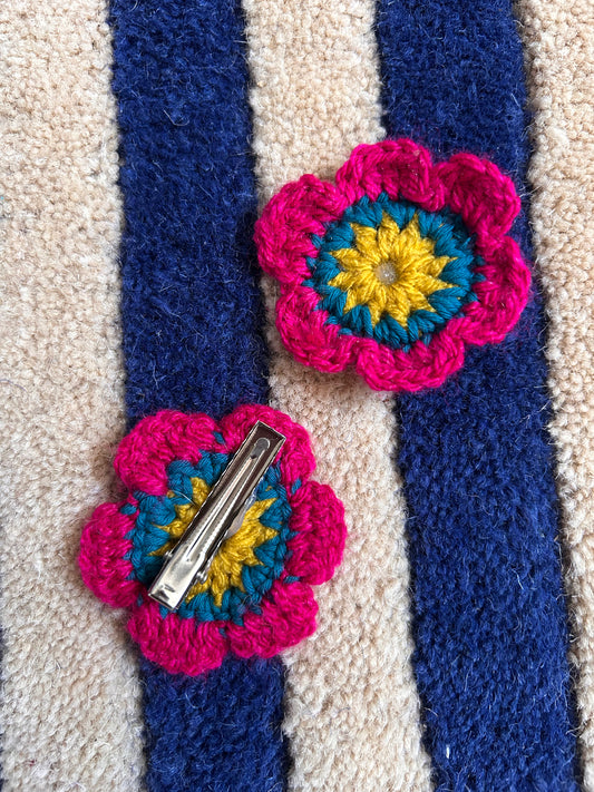 Crochet flower clip set