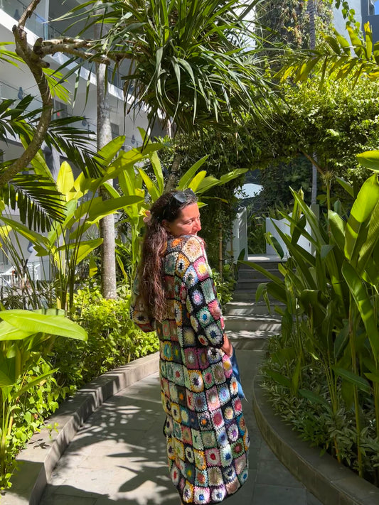 Black granny square maxi crochet cardigan