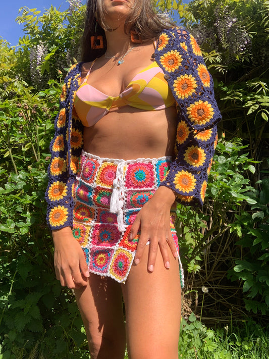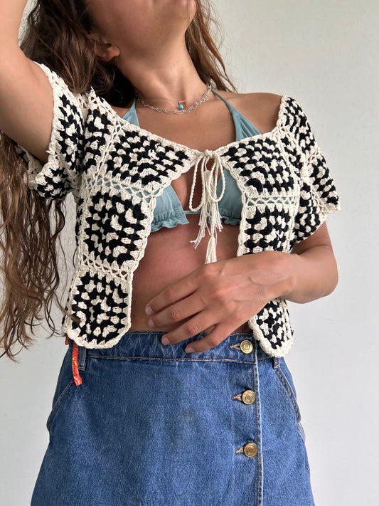 B&W granny square corset top / cardigan vest