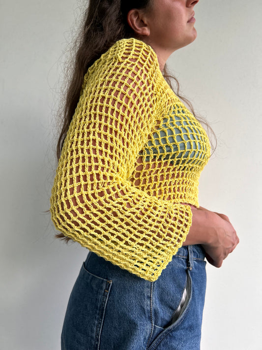 Yellow crochet flare sleeve long sleeve top (M/L)