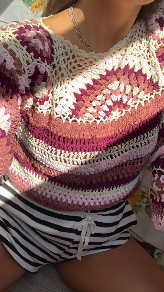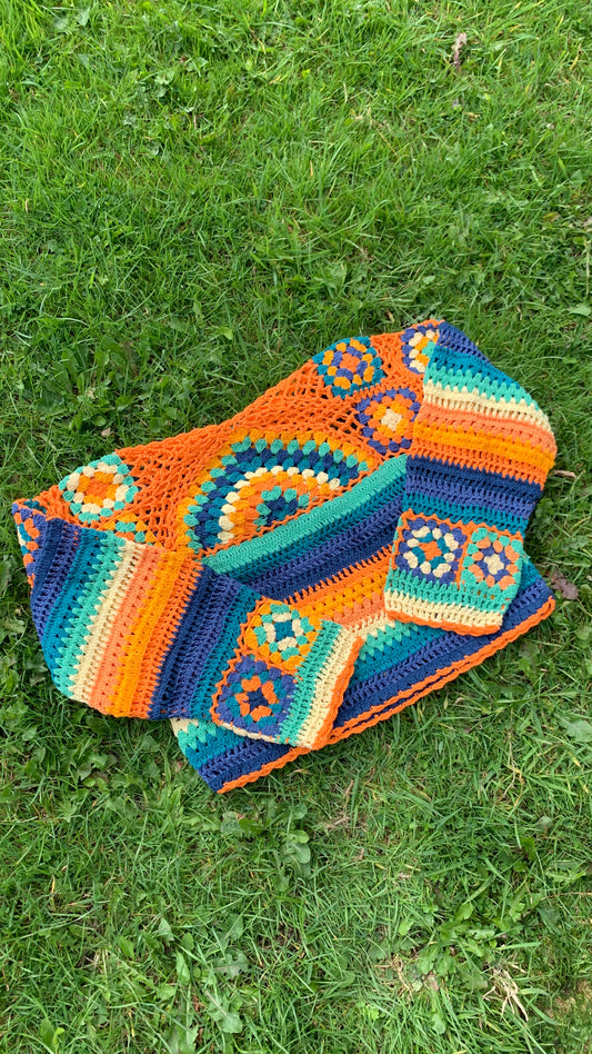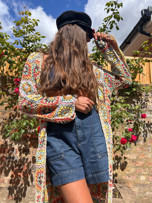 “Oats for Breakfast” Granny square maxi crochet cardigan