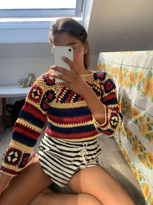“Mimi” Patchwork Granny Square Skirt with Split - XS/S