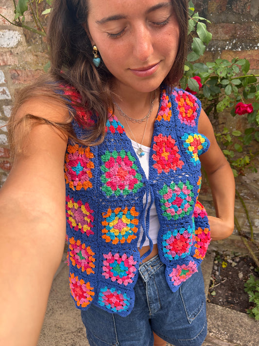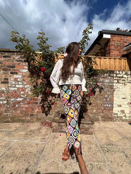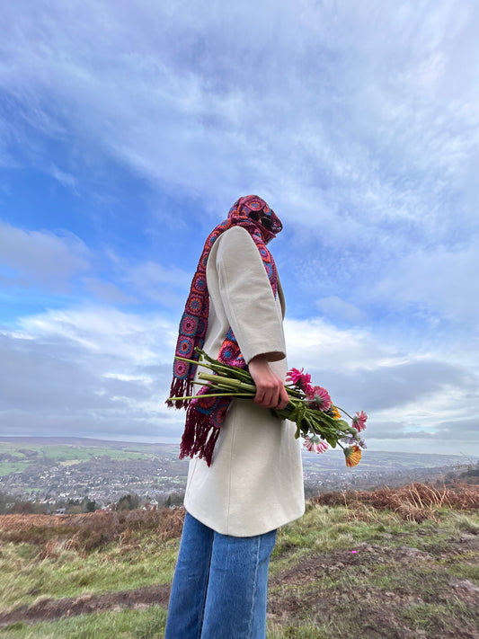 Cosmos Deep Purple Crochet Blanket Scarf with Tassels