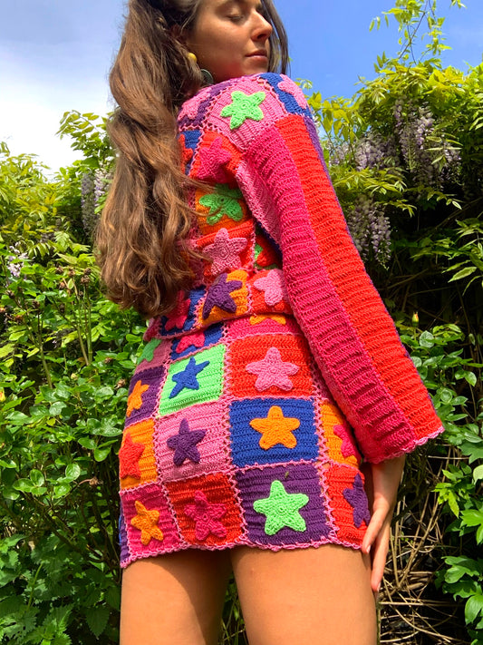 Rainbow Dreamer Crochet Cardigan with tassel tie